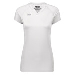 * 84% polyester/16% spandex knit with color secure(r) technology that helps prevent dye migration * 90% polyester/10% spandex wicking mesh inserts with color secure(r) technology that helps prevent dye migration * 4-Way stretch properties allow for increased mobility * Wicks moisture * Ladies' fit * Tag-free label * High Five logo on right chest * V-neck collar * Strategically placed seams for maximum mobility and comfort * Raglan sleeves