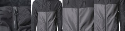 - Fleece-lined hood, heavy gauge drawcord, nickel eyelets